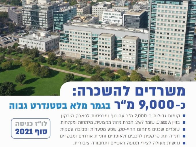 להשכרה משרדים בשטח כולל של כ 9000 מ”ר קומות 1.…